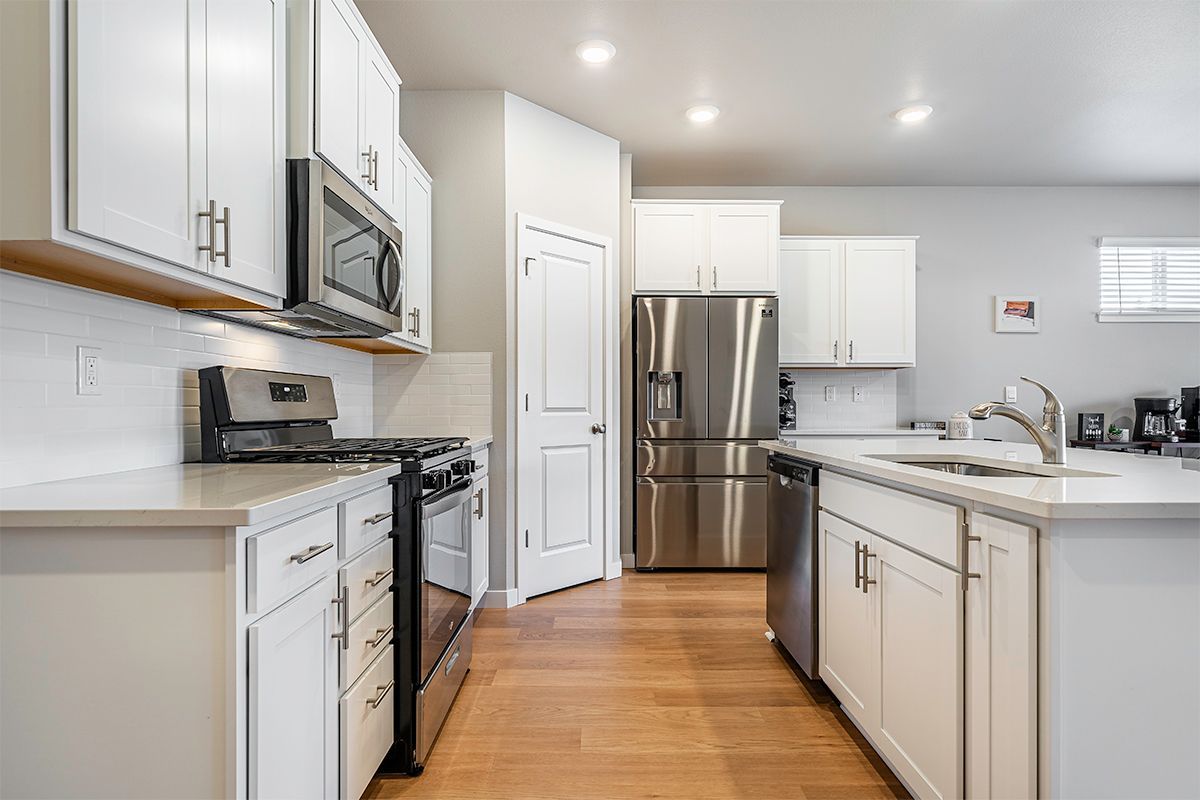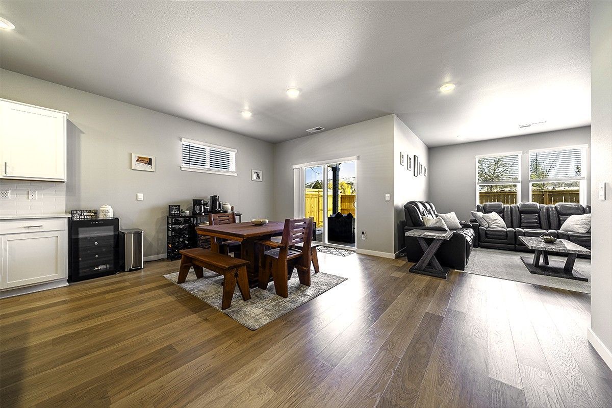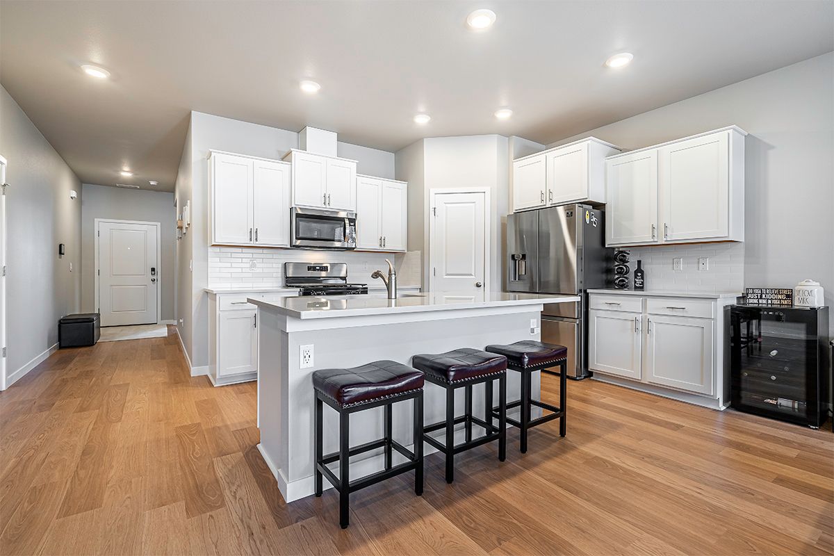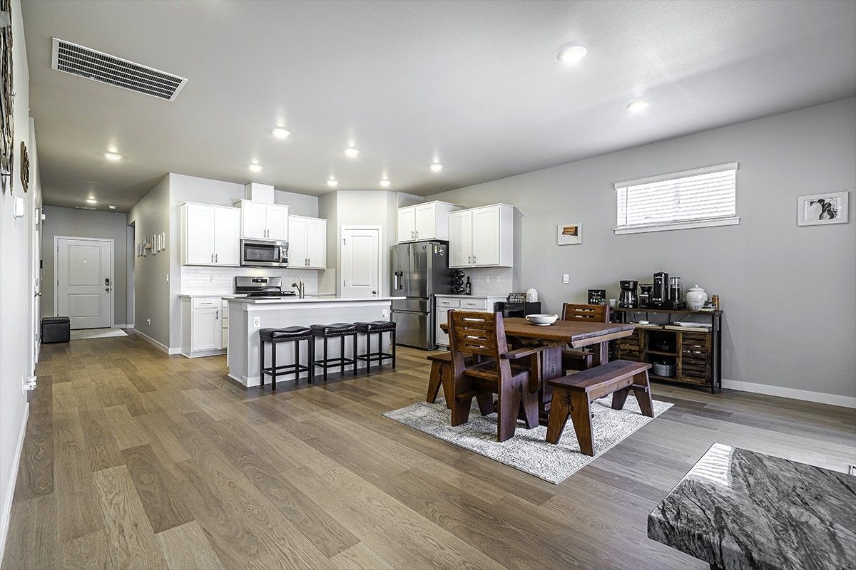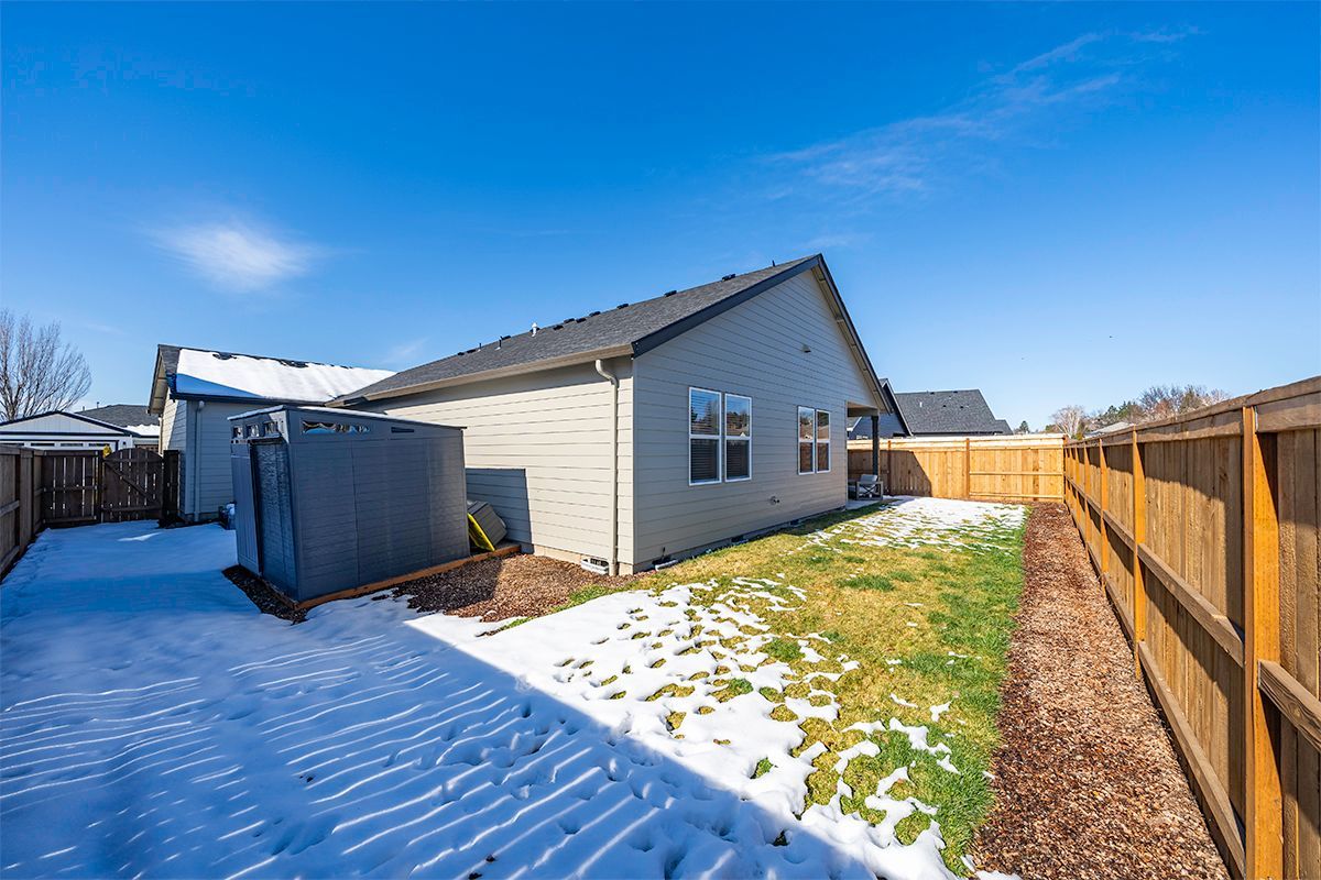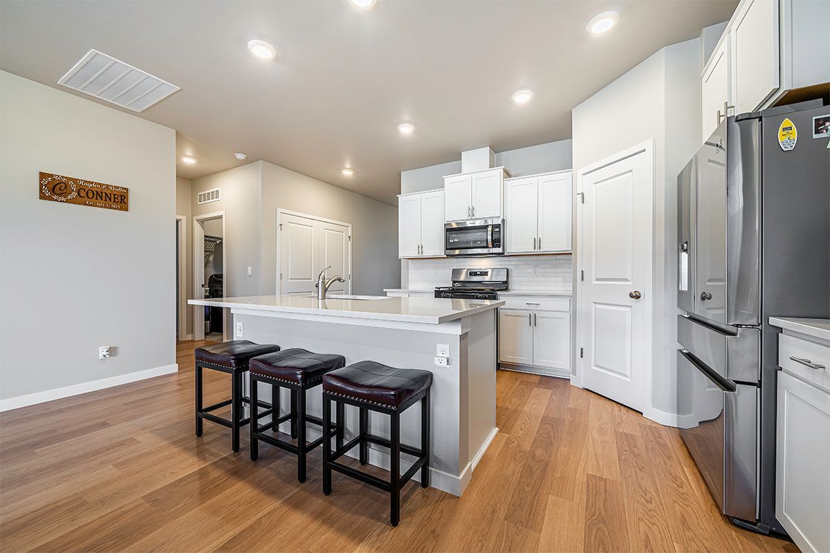 4 bedrooms and a 3-car garage for this beautifulNEW PRICE OR BUYER INCENTIVES! $15,000 price reduction OR purchase at initial offering price of $529,900 & seller will pay $15,000 toward a rate buy down or toward buyer closing costs! 2024-built single-level home with modern design, 4 bedrooms, a 3-car garage and full landscaping. Attractive, stone-clad exterior leads to the expansive open floor plan with contemporary styling, open living areas, sleek gas fireplace, open dining room & chef's kitchen with crisp white cabinetry, quartz countertops, stainless steel appliances, gas range, large island with dining bar seating, and pantry. Premium laminate flooring throughout the main living spaces adds warmth and a smooth finish. Lovely primary suite boasts a large walk-in, dual vanities, quartz counters, & a step-in shower. 3 additional bedrooms, a 2nd full bath, nice laundry room, high-efficiency heating, fenced rear yard, covered patio & an oversized 3-car garage complete this exceptional property. You will love it!
