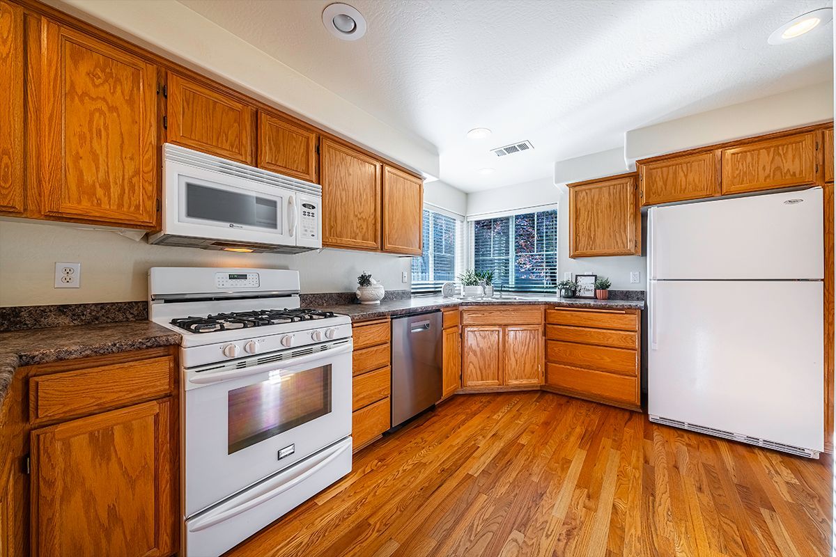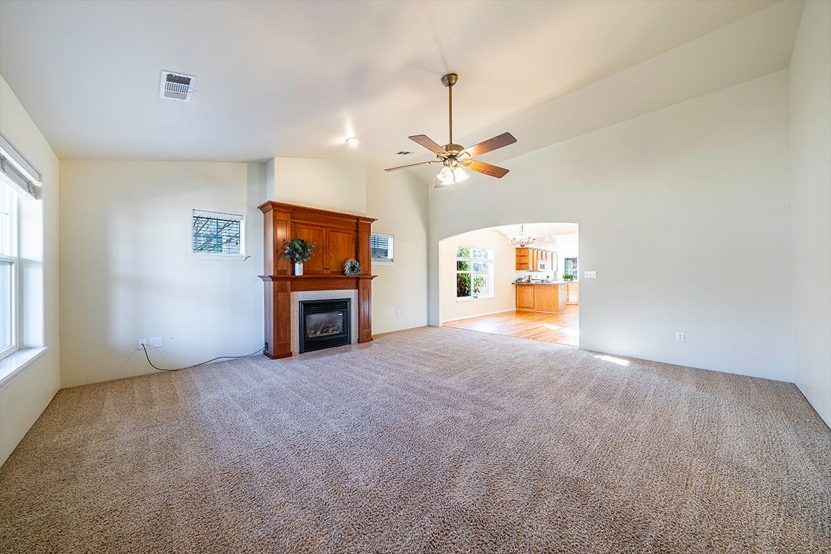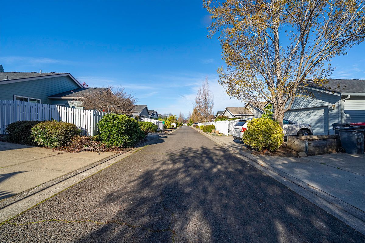You will love this single-level Craftsman-style home in the desirable Hidden Springs neighborhood in East Medford. A welcoming front porch leads into a light-filled interior with vaulted ceilings and spacious main living areas. Large windows fill the home with natural light, while the gas fireplace with tile surround and cherry-toned cabinetry creates a warm, inviting focal point. The living room flows seamlessly into the dining area and kitchen, both with rich hardwood flooring. The kitchen features a breakfast bar, stainless dishwasher, gas range, and corner sink overlooking the easy-care yard and patio. The primary suite offers a walk-in closet, ensuite bath, and oversized step-in shower. Two additional guest rooms and a full second bath are generously sized. Two-car garage with alley access and pull-down storage. Quiet location close to shopping, dining, and Asante Medical Center. steel