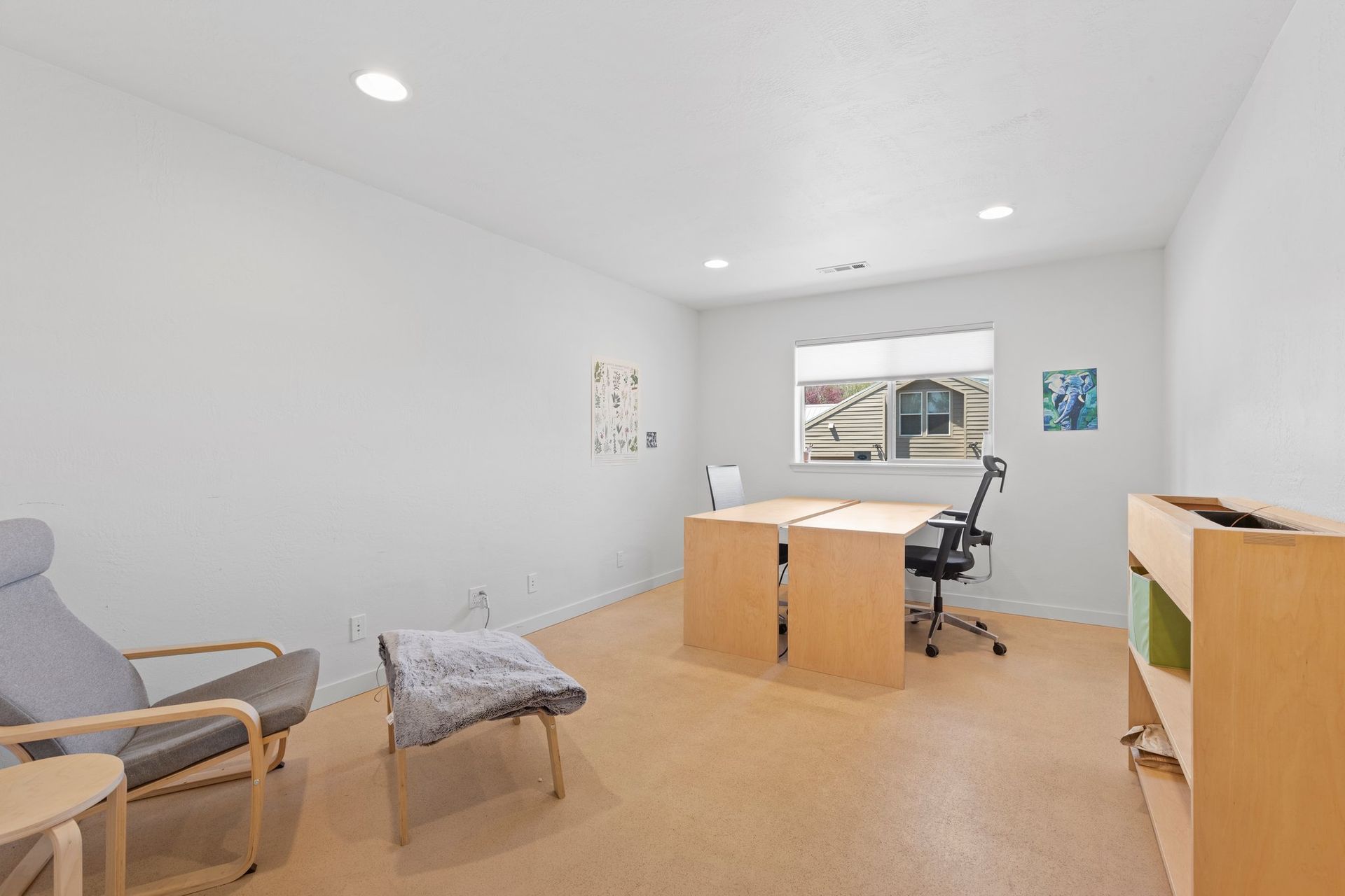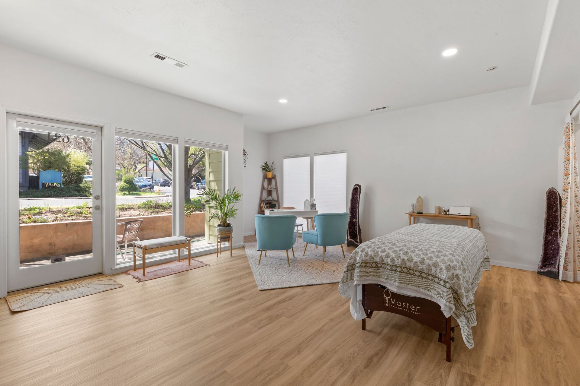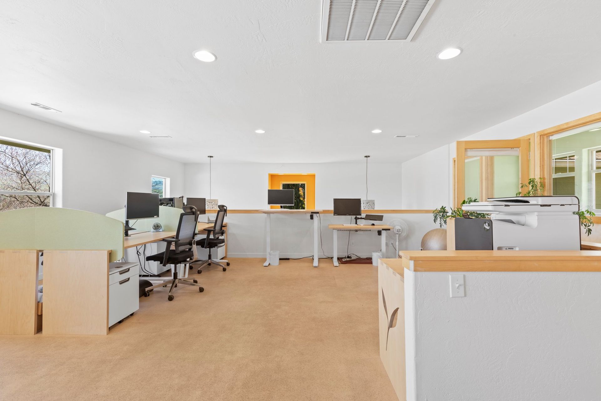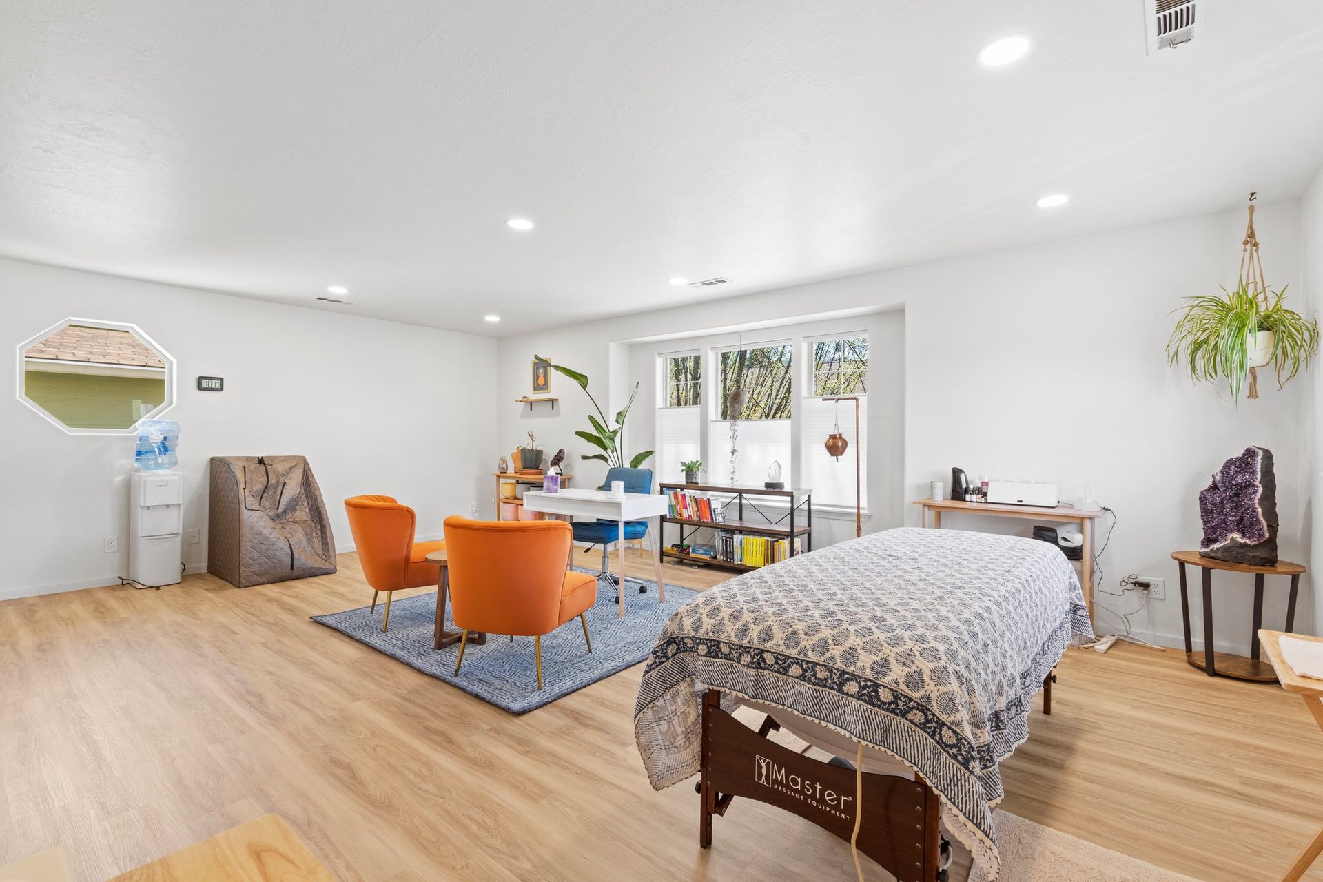 Prime location for this attractive 1994-built commercial building generating $7,500 monthly income. E-1 zoned with street-level Commercial/Retail and 2nd-floor residential. Beautiful remodel with 3 units built around a welcoming central courtyard. The 2 end units are identical with street-level commercial space, half bath and storage, plus upper-level studios with open living/bedroom, kitchen and full bath. The larger middle unit is artistic, open with soaring ceilings, smooth lines, a beautiful fireplace, gorgeous light, a separate office, a full bath, a kitchen, and an attached two-car garage. Upper level features a bright living/dining area, partial kitchen, multiple rooms, full bath, laundry facilities, and a large deck with beautiful mountain views. Large fenced rear yard. 4 recently paved parking spaces. Great property, loads of options for a variety of uses. End units may be perfect work-live units. Check with the City. Operate your business in a prime location in the heart of the Railroad District.